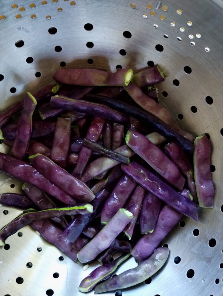 Another nice harvest from my garden are these violet-colored beans. I sowed them in May or June, I think, and they grew very quickly. It’s a pity that they lose their color and just turn green when you cook them, but they taste lovely!